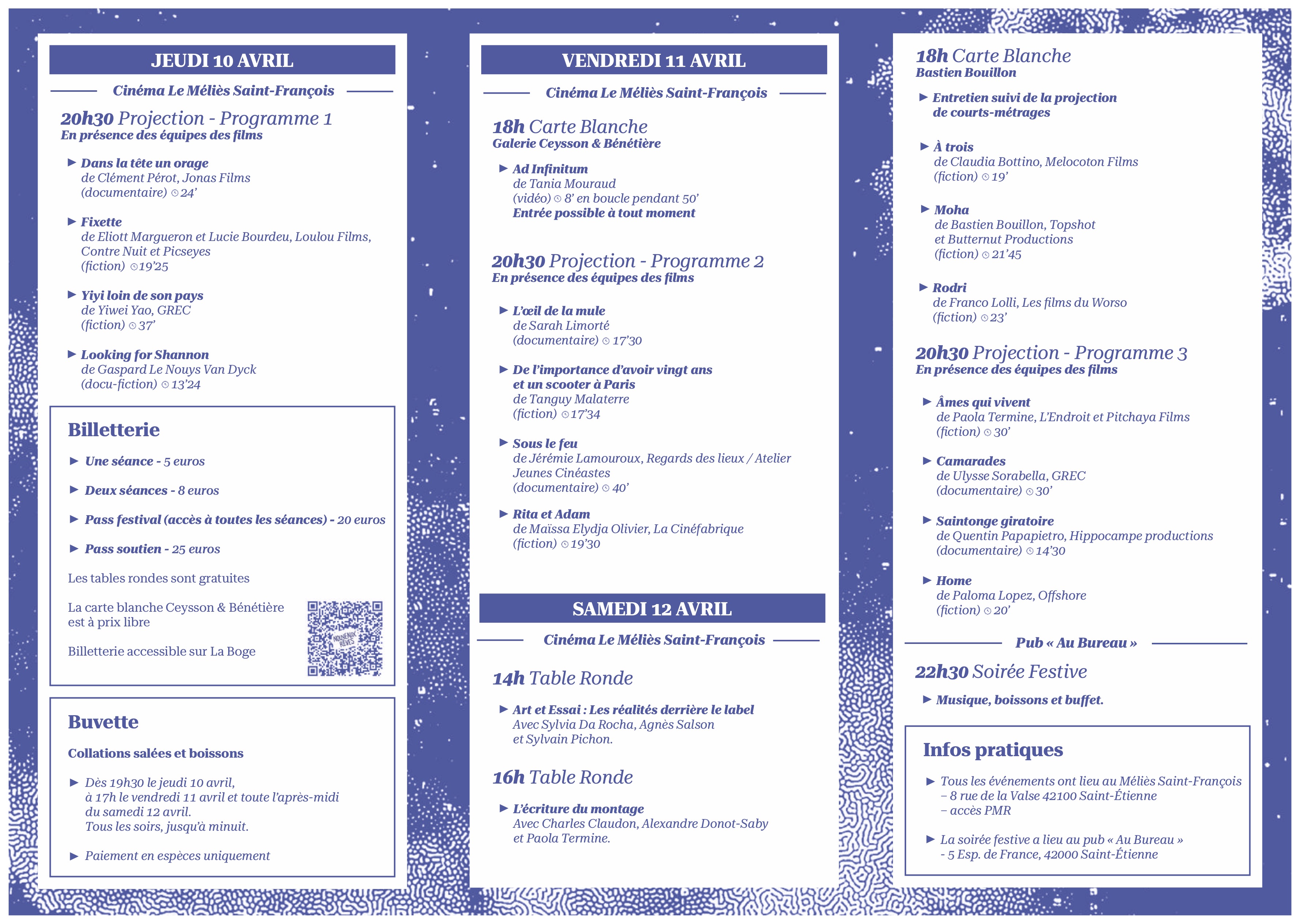 Les programmes de courts-métrages diffusés chaque soir au Méliès Saint-François seront suivis d’un questions-réponses avec des membres de l’équipe des films et d’un temps convivial autour d’un espace buvette.
